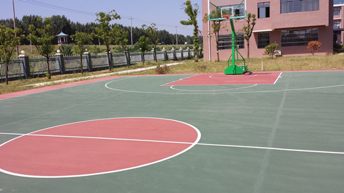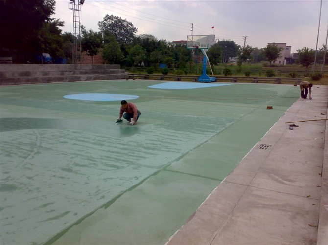 基料涂层:用强化沥青填充剂加石英砂和水混合搅匀 后满刮场地二遍;